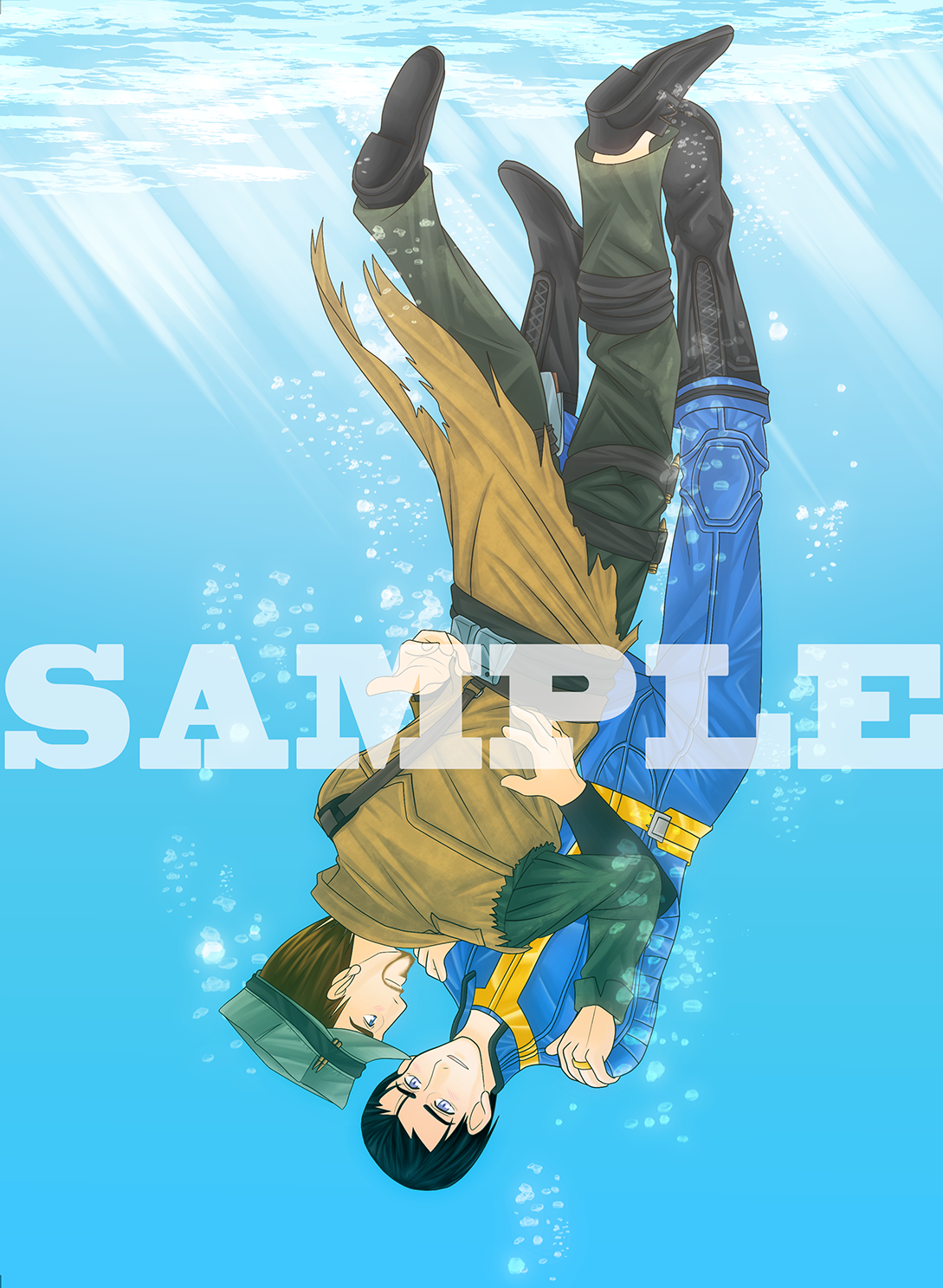 勿論パパネイトさんとマクレディさんが恋に落ちる意味を水中に変えて描いてます。