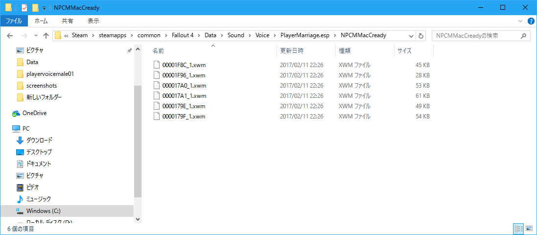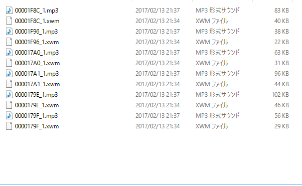 xwmファイルと同じ名前のLipファイルがありますが、抽出するのはxwmファイルのみです。
