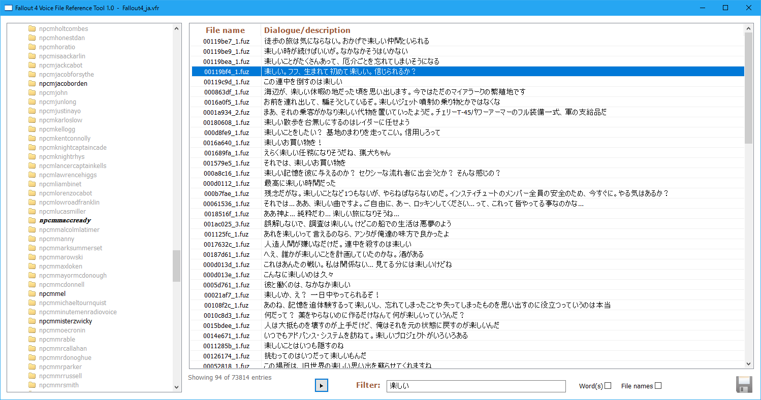 左側はFO4.esmからBAファイルを眺めた感じになります。右側は音声一覧ですな。