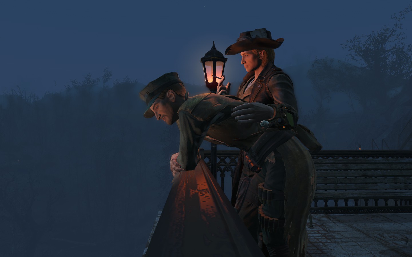 カップル用は自分と相手(この場合はマクレディ)にかけて位置を移動させなければいけないという(位置移動は人によってやり方がありますが、MODを使用してやるのが一般的らしいです。俺は入れるのが面倒なのでtclコマンドで大体の位置決めをしてからモーションかけて微調整をやってましたが)、ちょっとめんどうな仕様ですが、慣れるとまぁ、以下のよーなちょっと人によっては引く画像も作れます(笑)。