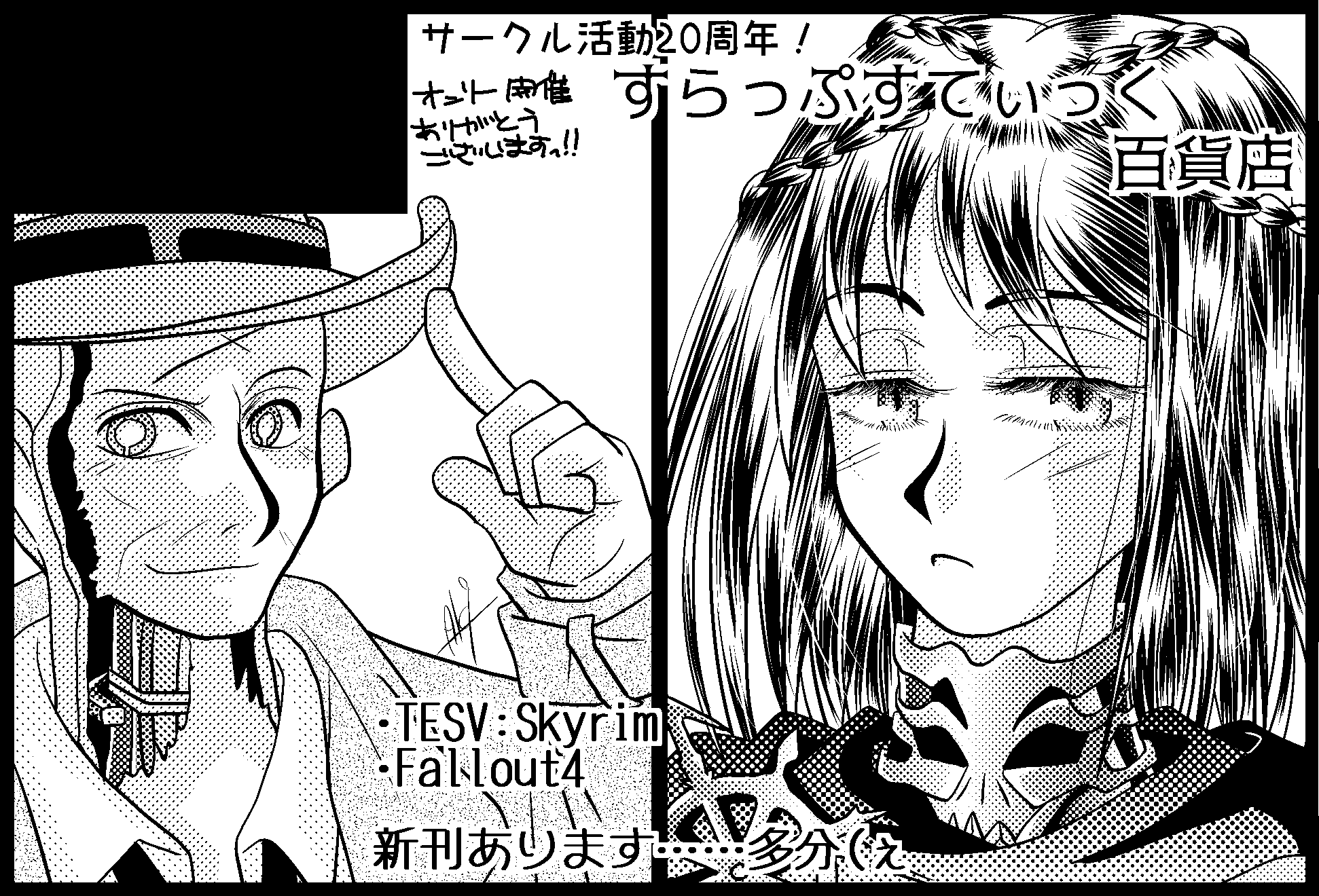 いやー去年10月、ベセゲーオンリー誰かやってくれないかなーとか呟いてたことがまさか本当になるとは思ってなかったので(笑)本当に嬉しい限りですね!