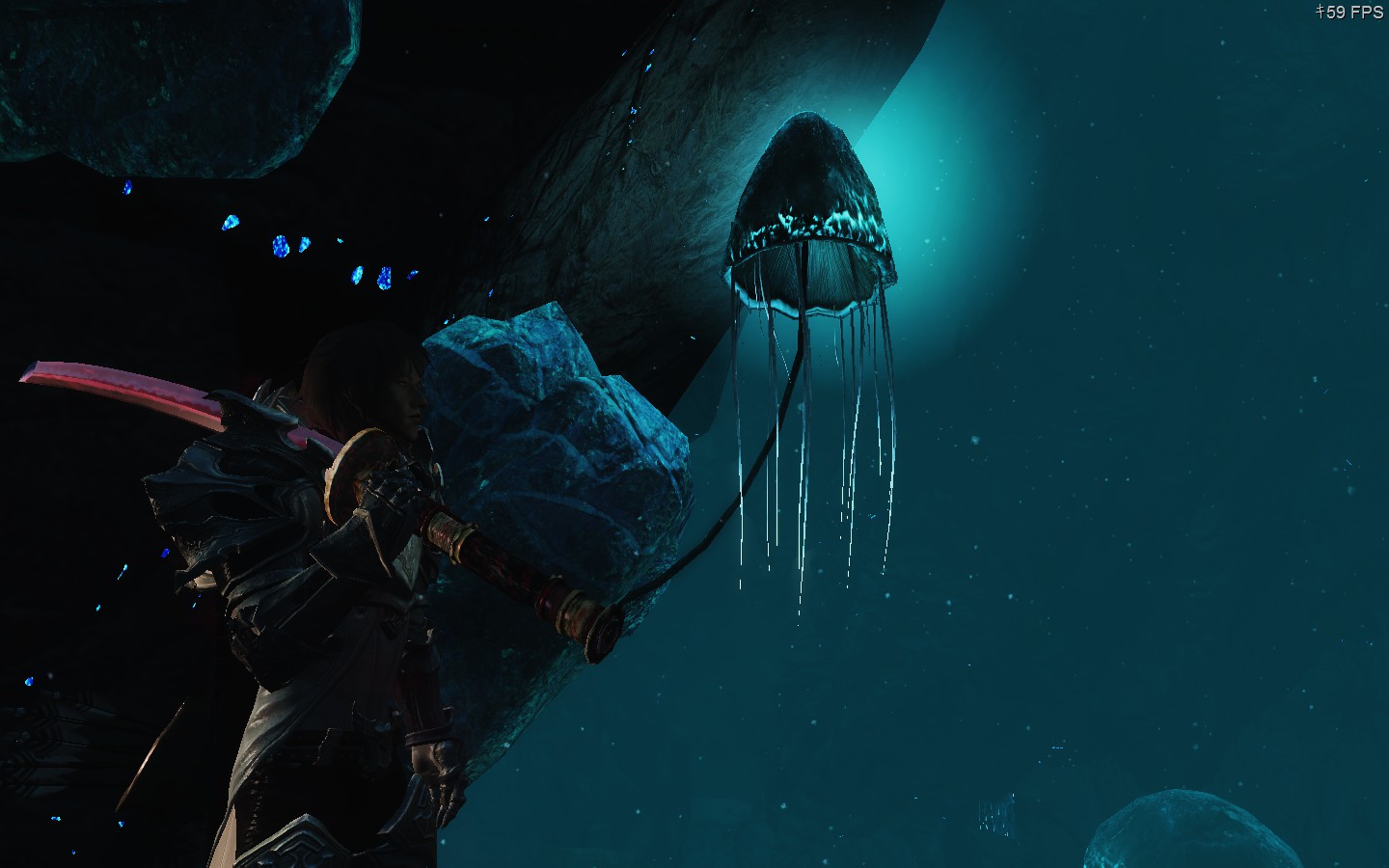 ドゥーマー遺跡にいったら、ブラックリーチみたいな場所に出たよって感じ。青い光が綺麗ですね。