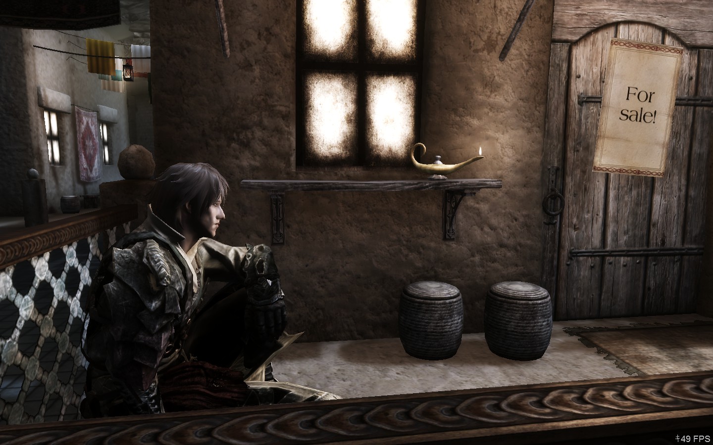 一人用ベッドと小さなテーブルと椅子一脚、チェスト(何も入ってない)とタンス、明り取りの金色ランプ(画面上)しかないという四畳一間な家でした。酷すぎる・・w