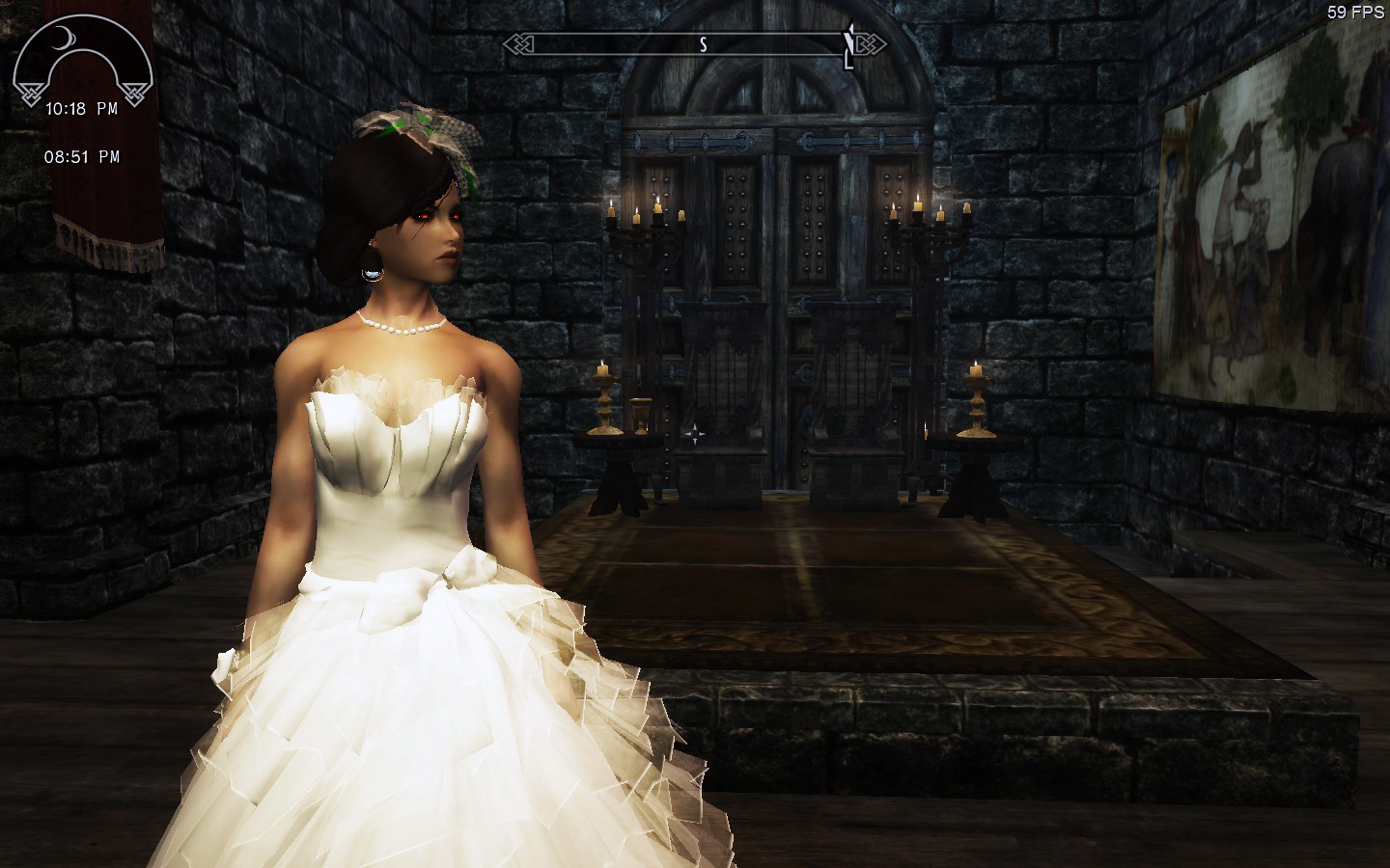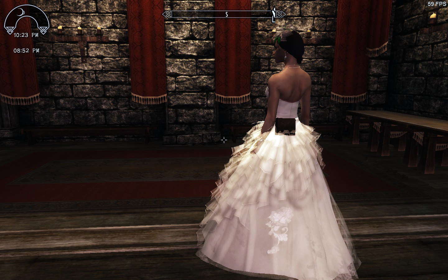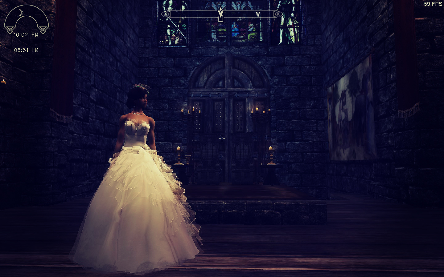 ENBを変えたせいで、かなり回りが落ち着いた印象に見えますね。そんな中白無垢ならぬウェディングドレスを着てるセラーナたんはめちゃ映えますw