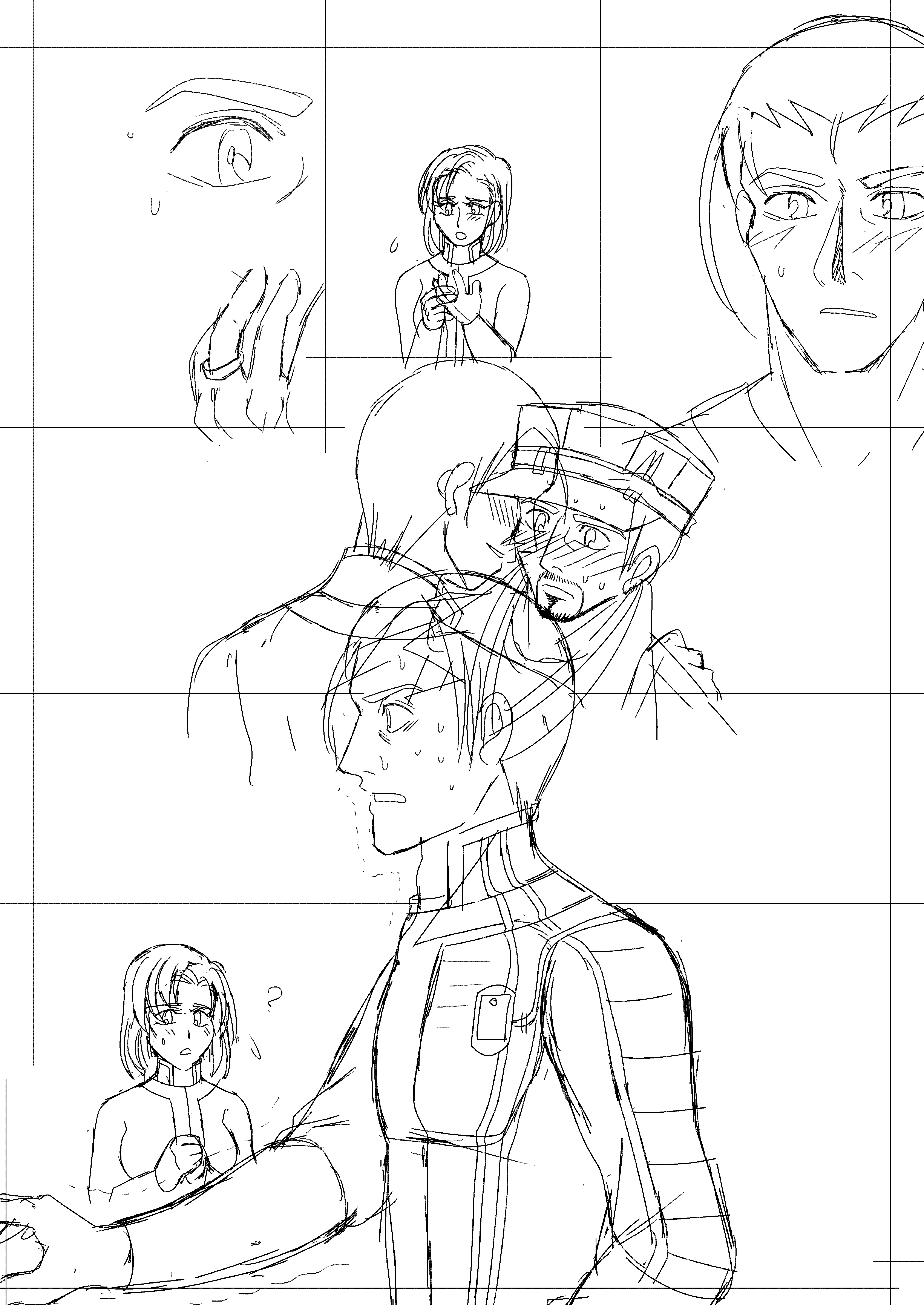 そんな後編のクライマックス一歩手前のシーンですが、まだ下絵が全ページ完了して内にも関わらず当ブログ限定で載せておきます。 ……まぁ、ぶっちゃけフリートの方では一度公開してましたが、全貌は見せてなかったのでね。