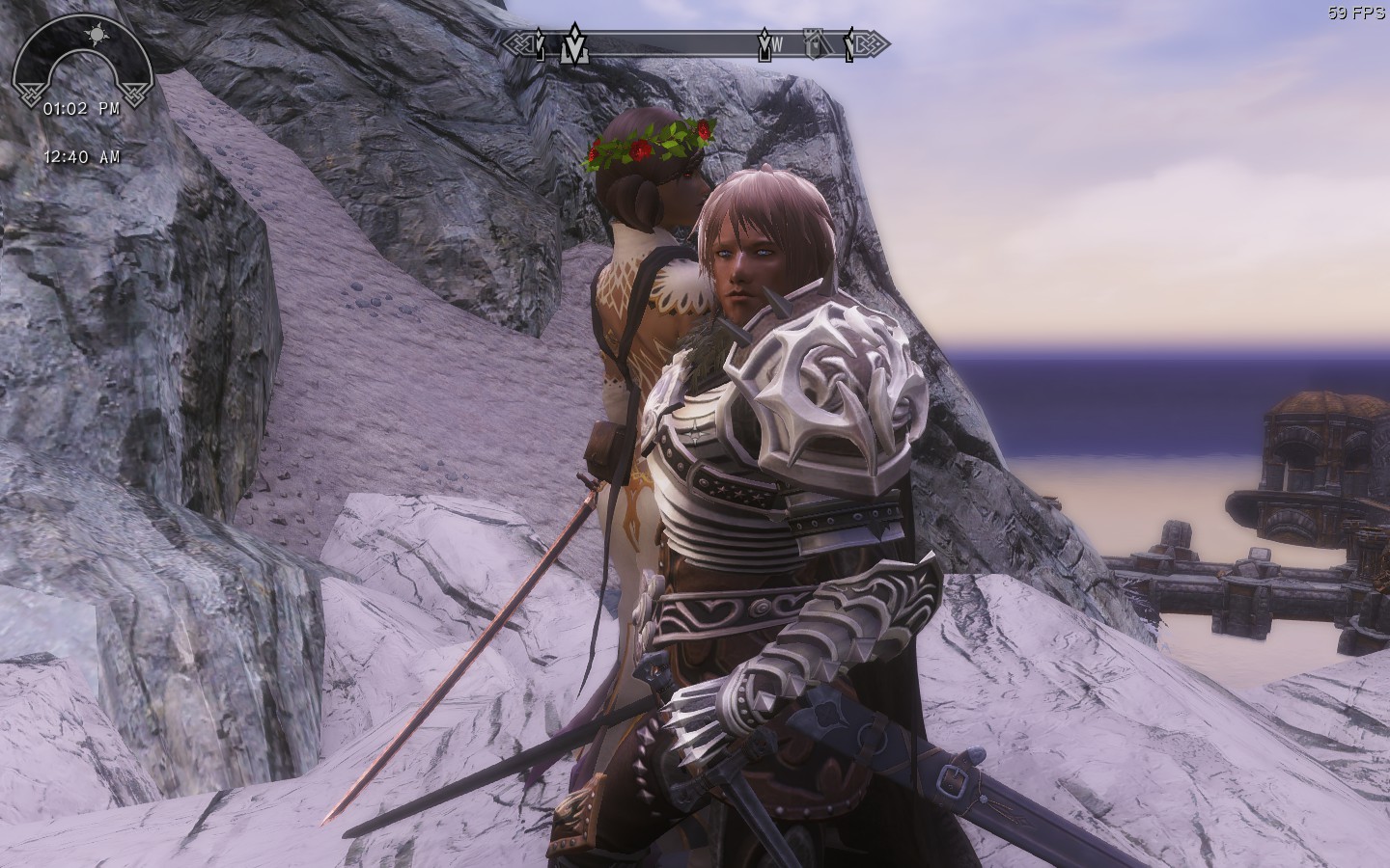 フォロワーに限らず、スカイリムの住人はプレイヤーが近づくとそちらの方を見ますけど、そういうのも悪くないな、と。