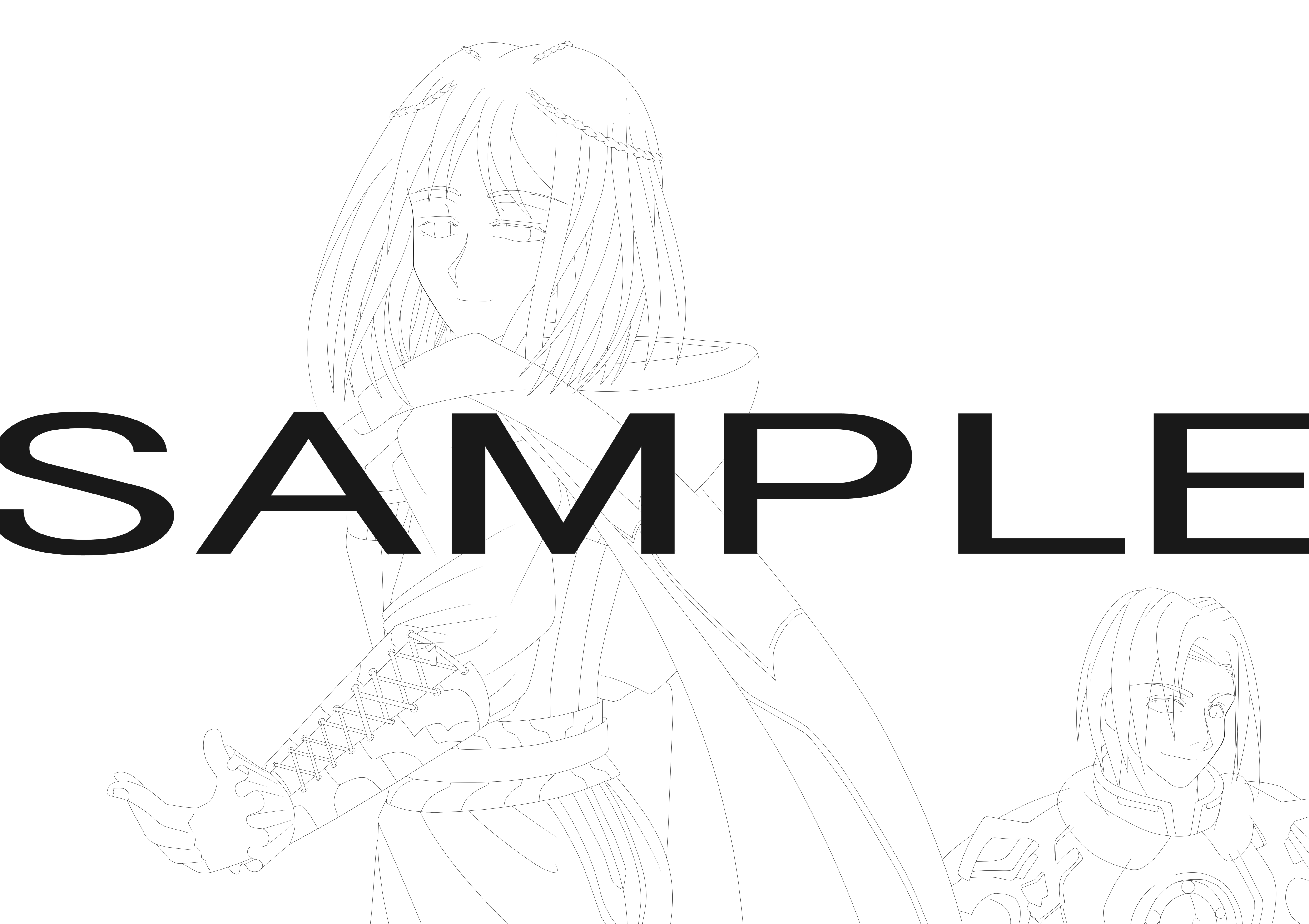 線画の中でもっとも苦手とするのはセラーナの腕に巻かれてる組紐。クロス状態になってるのを描くのがものすごく嫌いです(笑)そこらへん手抜きしてあると思うので拡大してみないでやってくださいね。