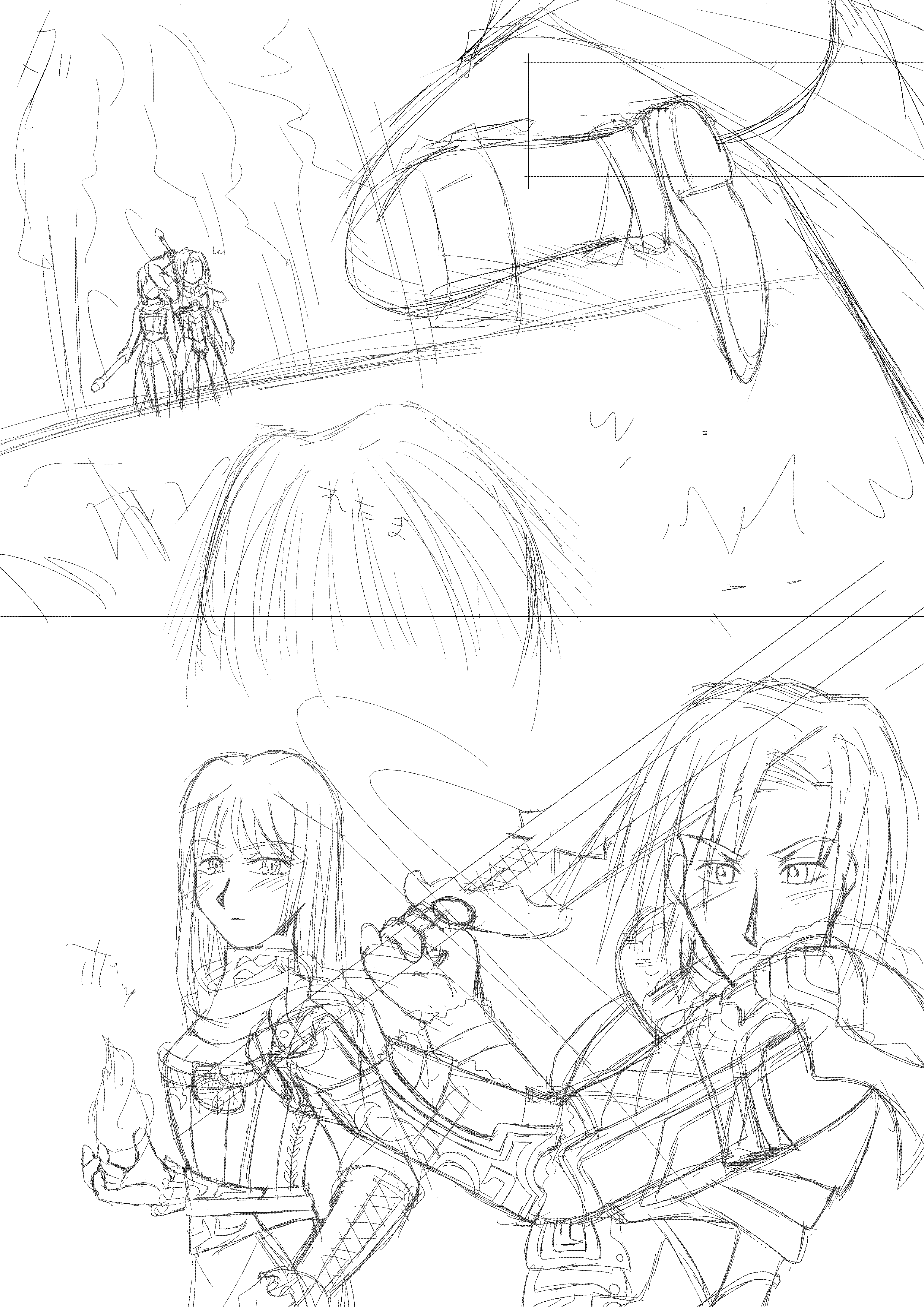 線画状態ですが台詞もなければ所々説明があったりキャラ重ねしてる部分がごちゃごちゃしてて(レイヤーで重ねてる状態な為)醜い見難さ大爆発ですがご容赦を。