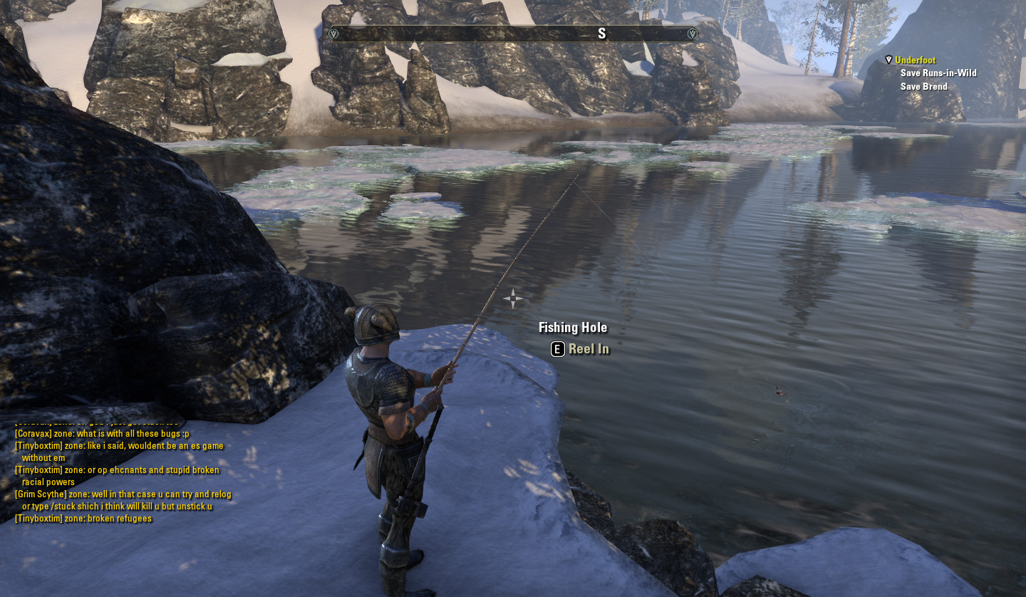 釣りがなかったSkyrimだったので嬉しくてやりまくってましたが、周りの人は釣りなぞに興味ないのか全然釣りポイントに来る人はいませんでした・・面白いのに・・