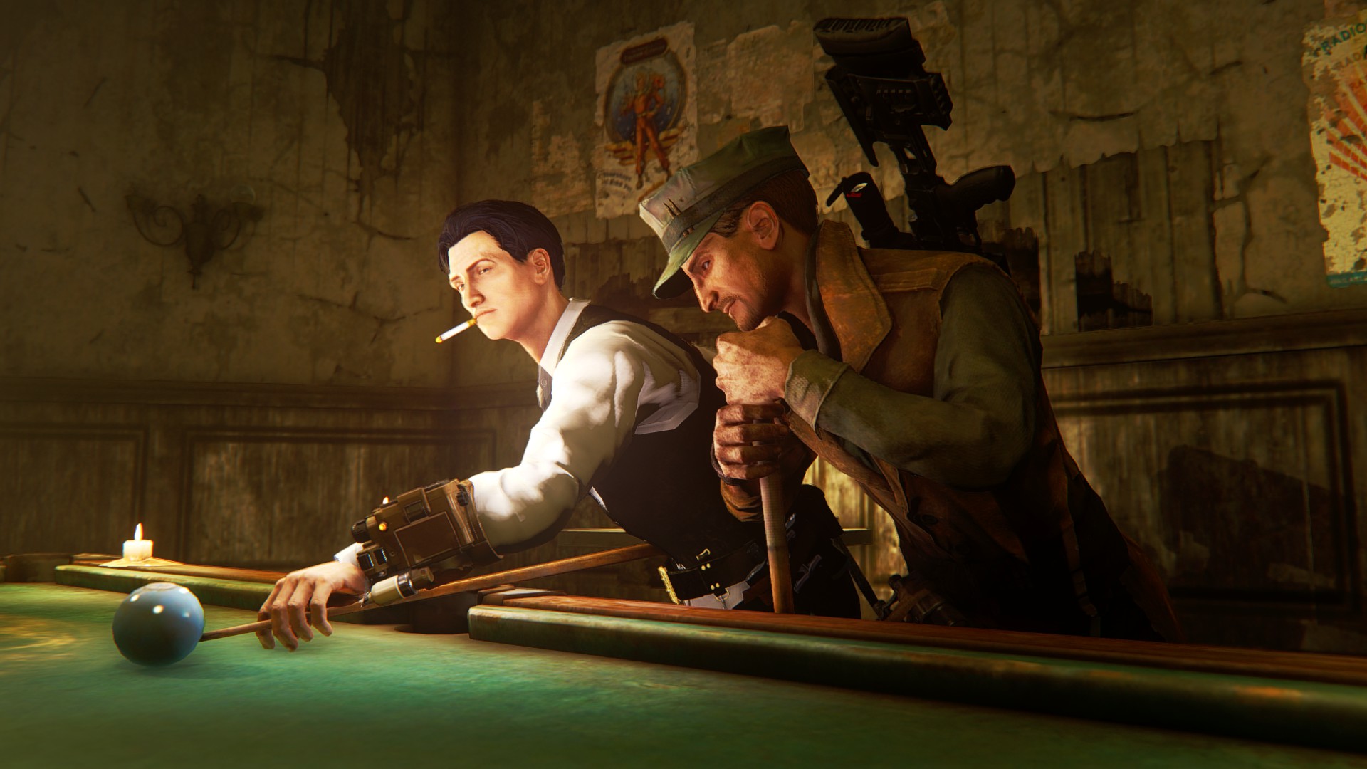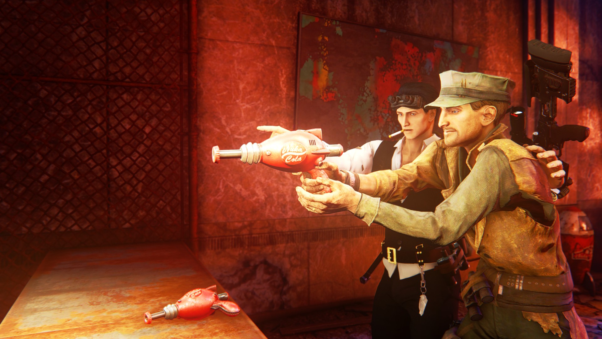 そんな中、ふっ、と声が聞こえたので眼前を──といっても、粗末な木製の掘っ立て小屋のような建物の中にこれまた粗末な椅子とテーブルがあるだけの質素といってもおかしくない部屋の先にガラスが嵌められていない窓框の先だ──見ると、サンクチュアリのメインストリート(民家同士を繋ぐ通りは一本しかないためこう呼ぶのに相応しい)を歩いているネイトと、彼になにやら話しているプレストンの姿が見えた。大方、彼の力を借りたいのだろう。