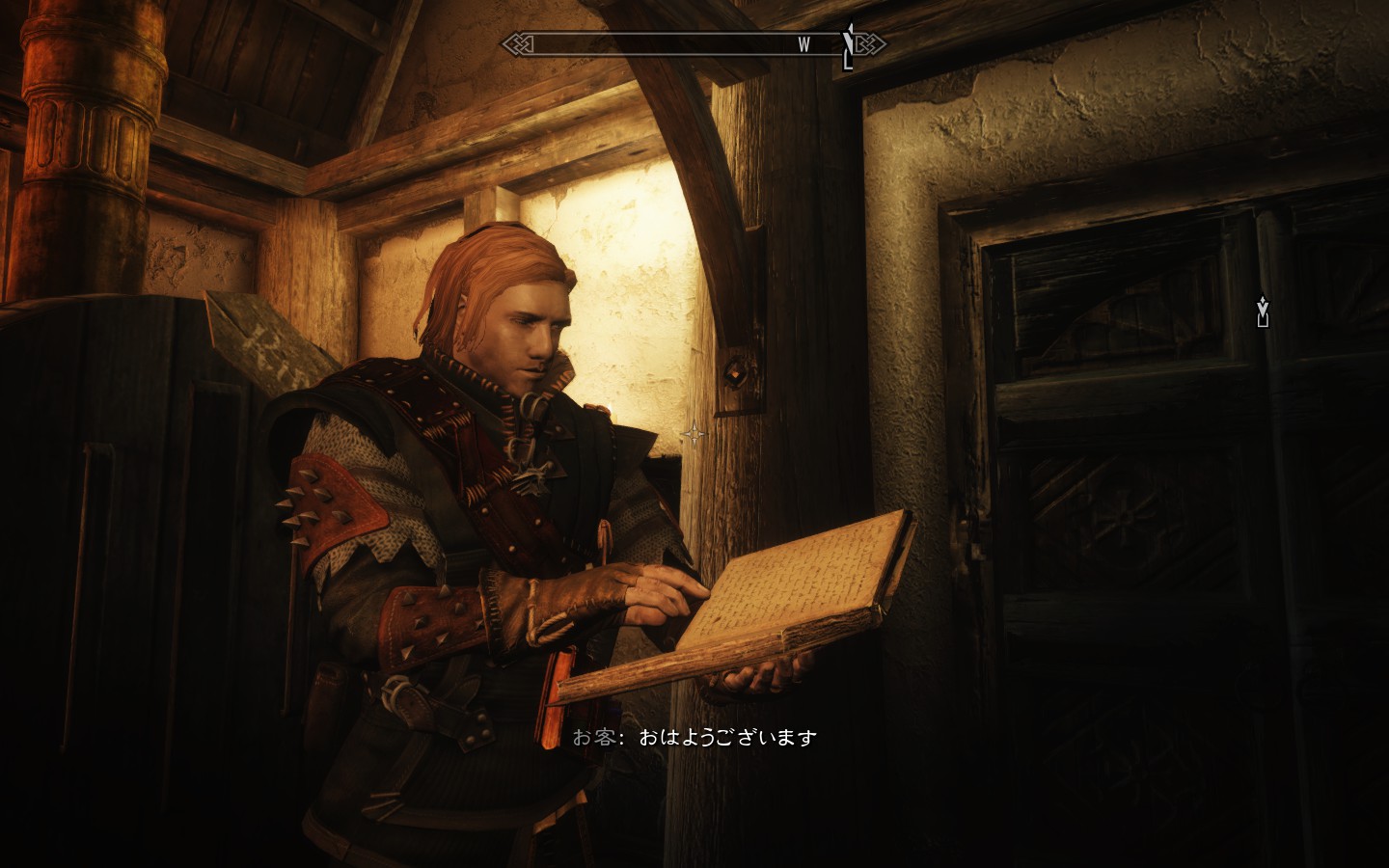 「羨ましいねぇ。そのドラゴンボーンとやら。一躍英雄のお仲間入り、って事だろ? 英雄ともなればスカイリムの住民から賞賛やら何やらもらい放題、やり放題、ってか? 俺らもそういう英雄様とお近づきになりてぇもんだ」