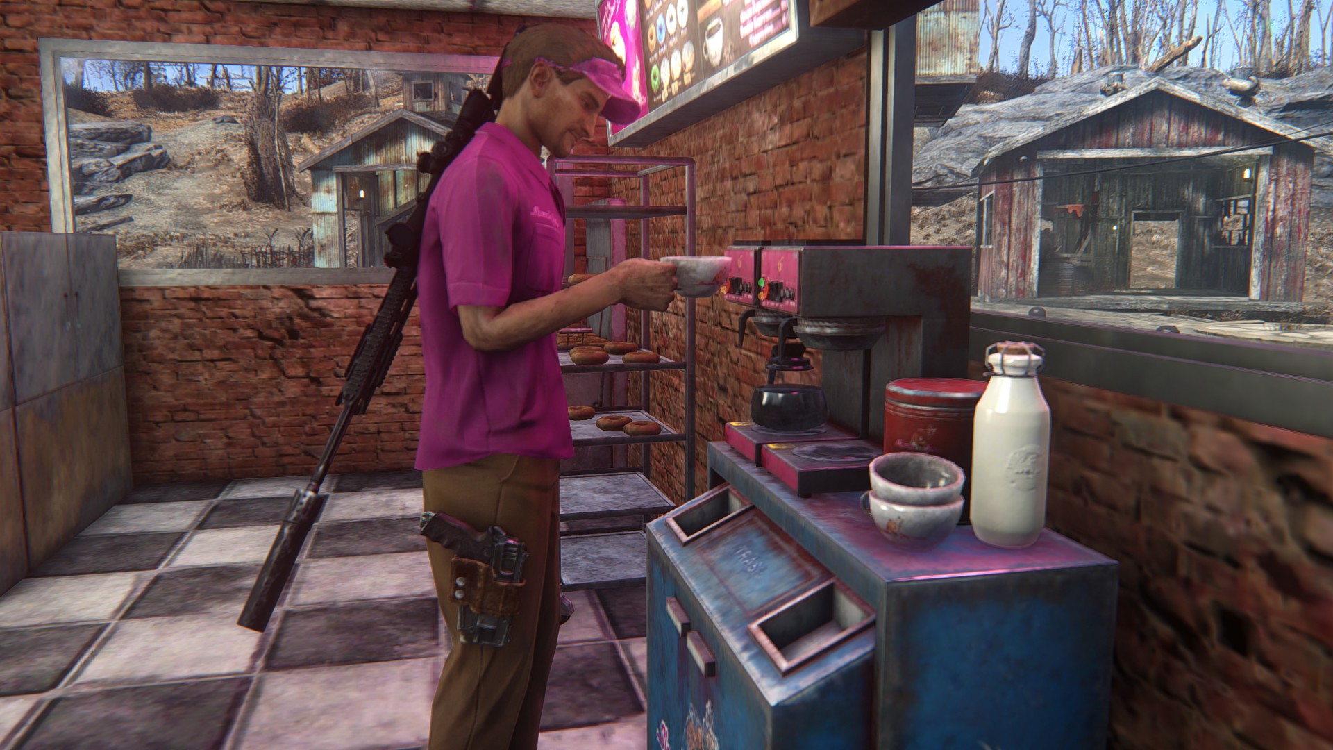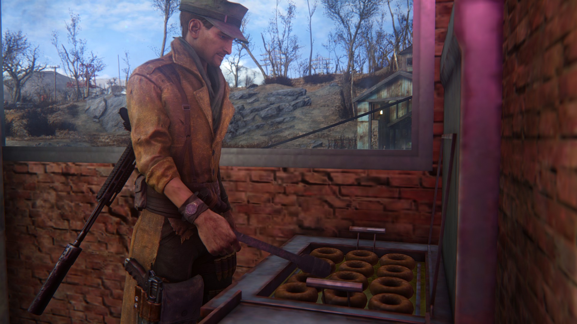 そんな見た目もあるせいか、中の人はサバイバルモードでFO4やってるんですけど、おなかが空いた状態でそんな巨大なドーナツを二つ食べるだけで腹が膨れる仕様には笑いました。