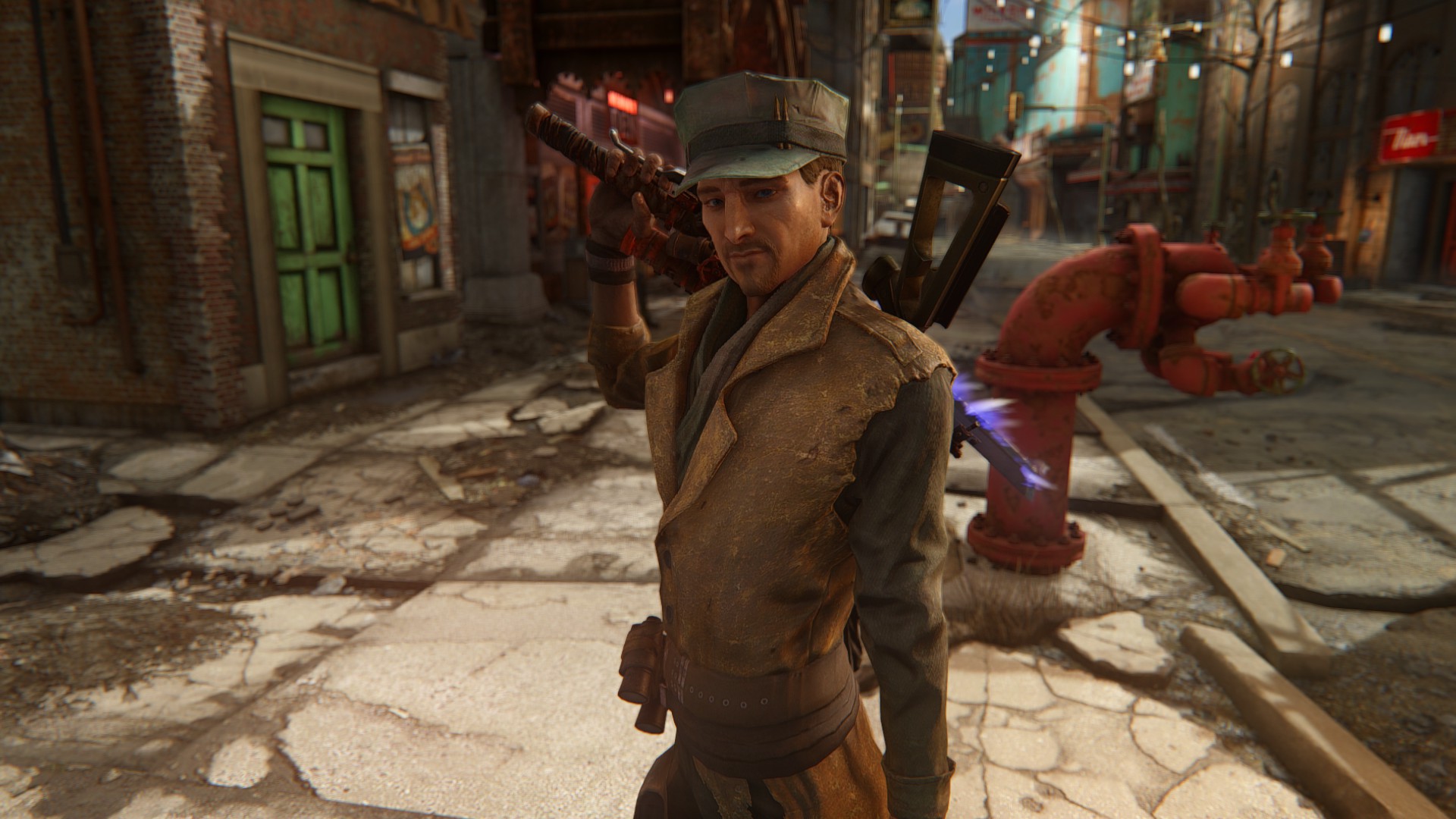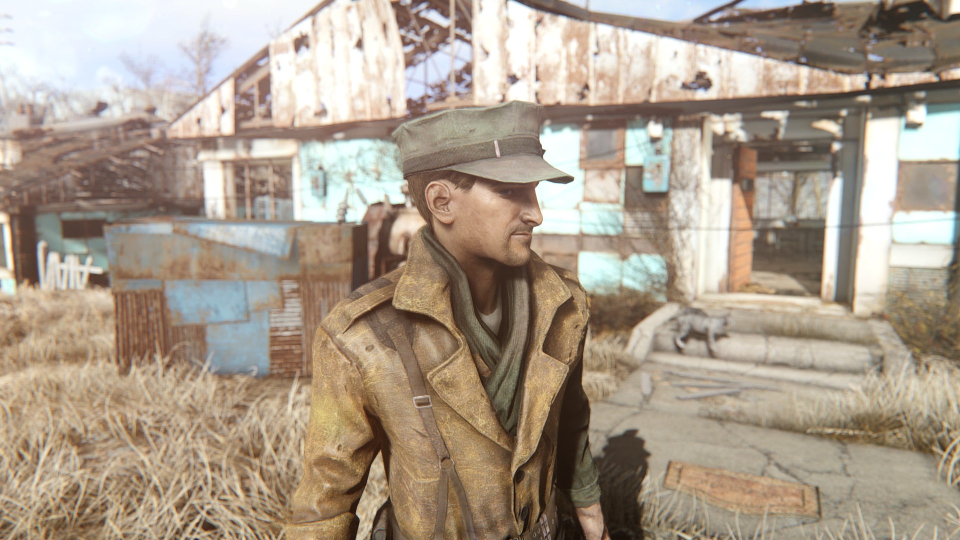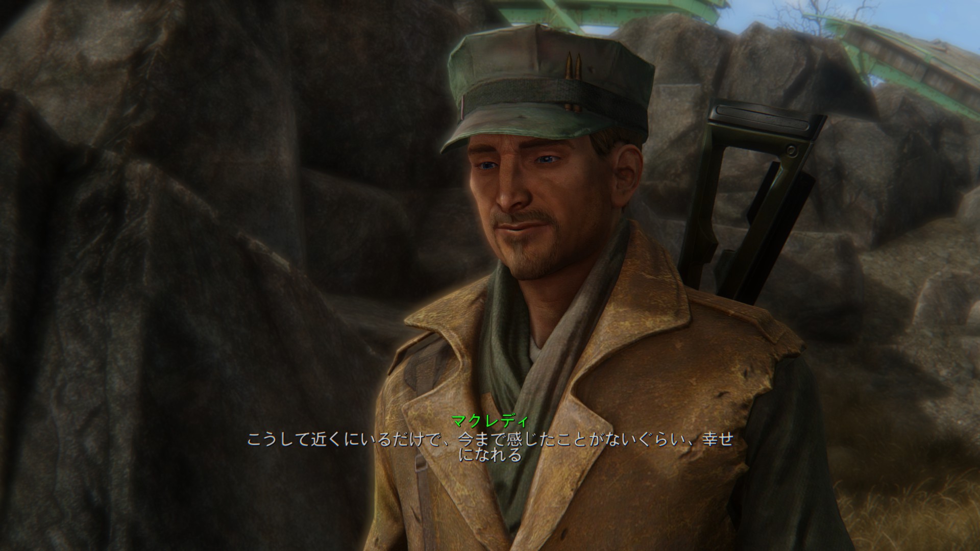 男性用衣装ってなぜかFO4はめっちゃ少ないのですが、その少ない中でもかっこいい奴を優先的にマックに着せてます。さすがにマクレディにマッドマックスの衣装はちょっとなー・・と思ってたので。