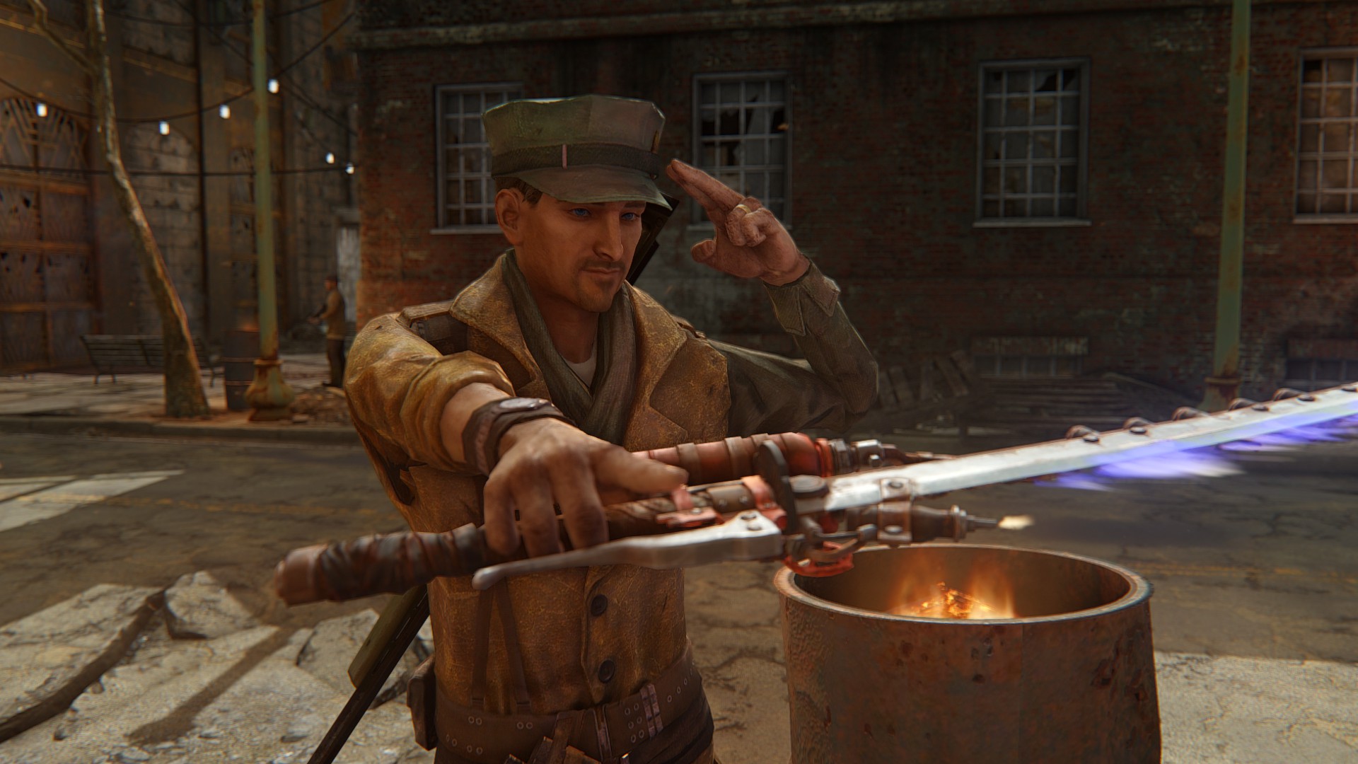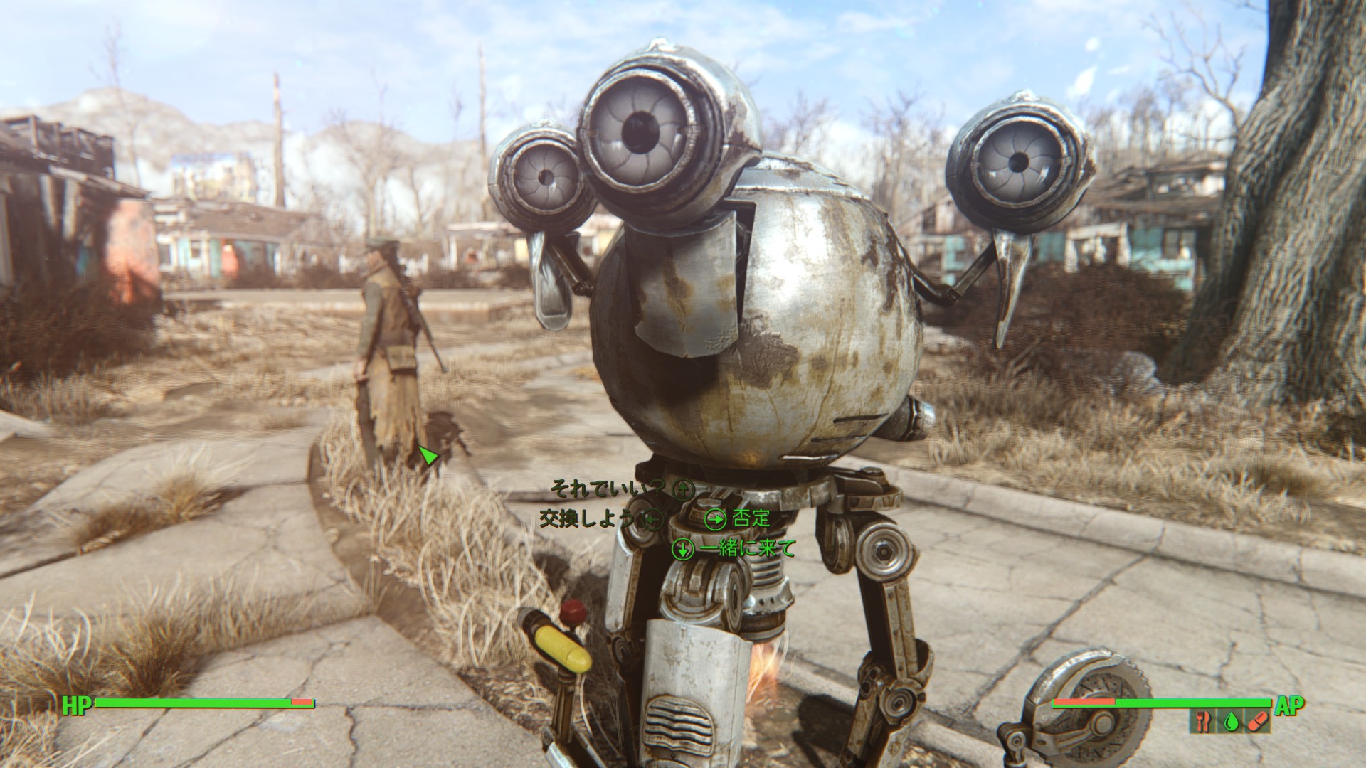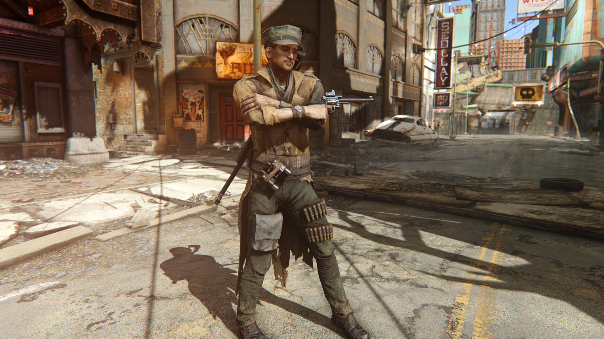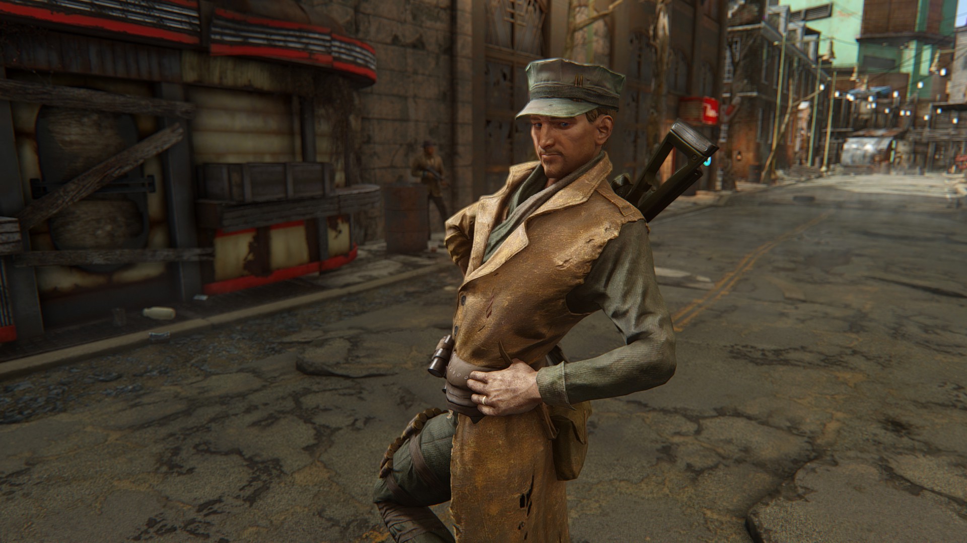 男性用衣装ってなぜかFO4はめっちゃ少ないのですが、その少ない中でもかっこいい奴を優先的にマックに着せてます。さすがにマクレディにマッドマックスの衣装はちょっとなー・・と思ってたので。