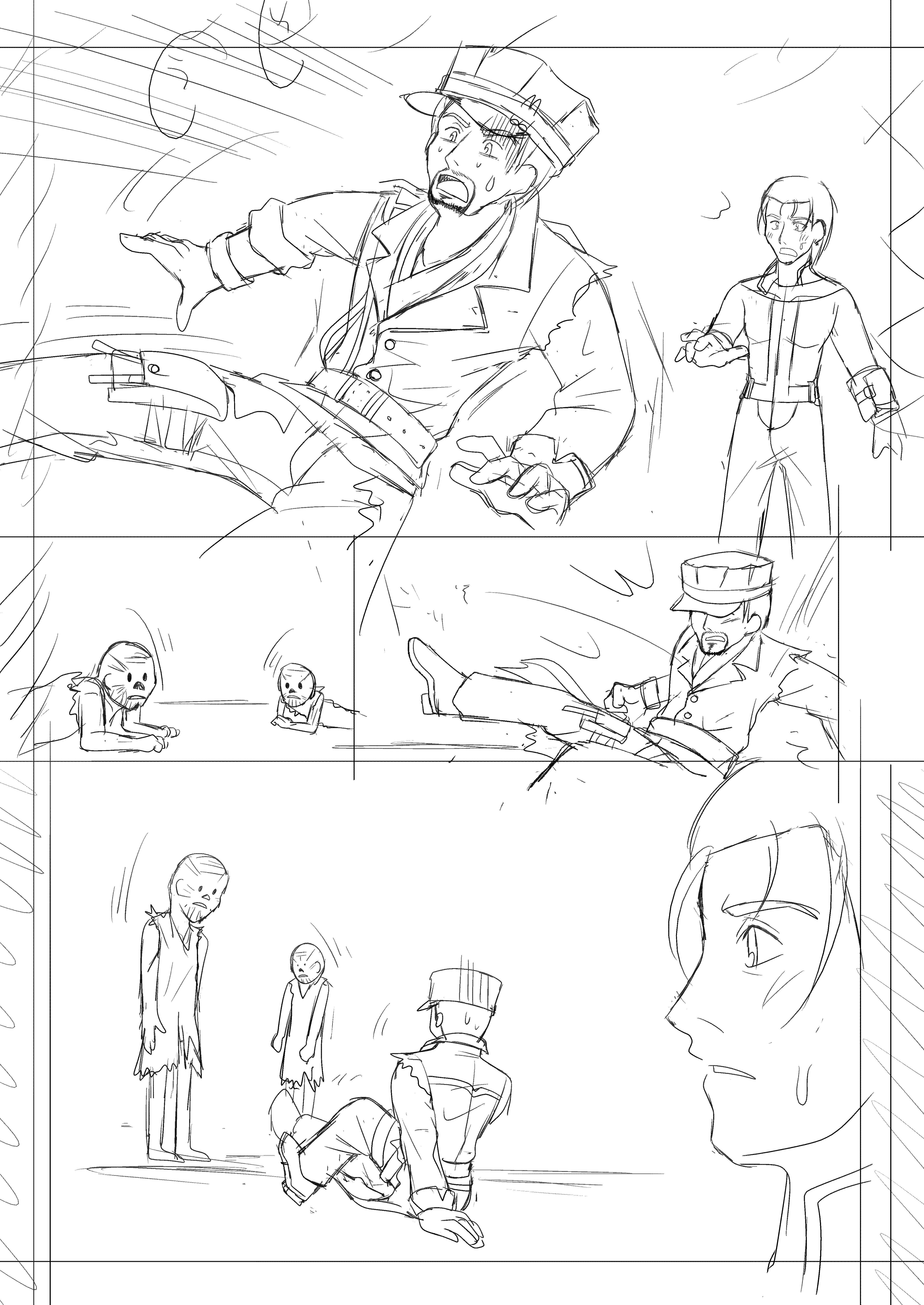 酷いぐっちゃーな下絵ですが、これじゃどの場面のどのコマなのかさっぱり分かりませんね・・まぁ戦闘パートの一部分とだけ。冒頭のマクレディは何をしているのかと思われるでしょうが……